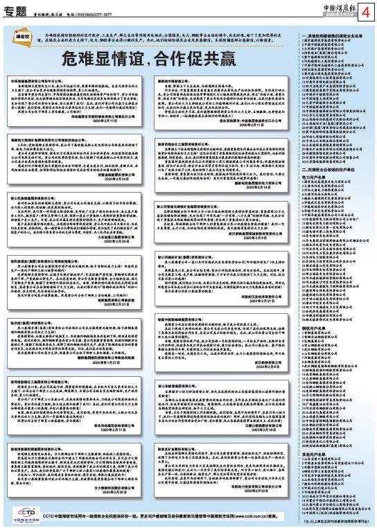 編者按:為確保疫情防控期間的醫(yī)療救護(hù)、工業(yè)生產(chǎn)、群眾生活等用煤用電供應(yīng),全國煤炭、電力、鋼鐵等企業(yè)紛紛攜手,共克時艱,結(jié)下了更加深厚的友誼。在煤炭企業(yè)的鼎力支持下,電力、鋼鐵等企業(yè)得以順利生產(chǎn)。為此,他們紛紛給煤炭企業(yè)發(fā)來感謝信。本報特摘選部分感謝信,以饗讀者。