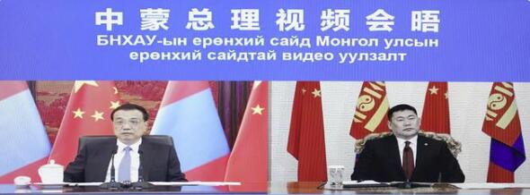 10月12日,國務(wù)院總理李克強(qiáng)在北京中南海紫光閣同蒙古國總理奧云額爾登舉行視頻會晤。